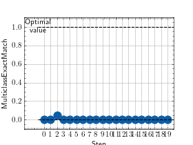 >>> # Example plotting multiple values >>> from torch import rand, randint >>> from torchmetrics.classification import MultilabelExactMatch >>> metric = MultilabelExactMatch(num_labels=3) >>> values = [ ] >>> for _ in range(10): ... values.append(metric(randint(2, (20, 3, 5)), randint(2, (20, 3, 5)))) >>> fig_, ax_ = metric.plot(values)