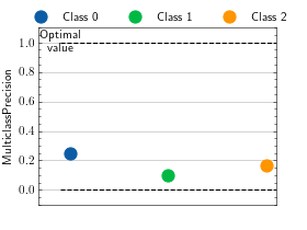 >>> from torch import randint >>> # Example plotting a single value per class >>> from torchmetrics.classification import MulticlassPrecision >>> metric = MulticlassPrecision(num_classes=3, average=None) >>> metric.update(randint(3, (20,)), randint(3, (20,))) >>> fig_, ax_ = metric.plot()