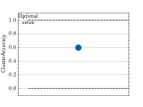 \[\text{Cluster Accuracy} = \max_g \frac{1}{N} \sum_{n=1}^N \mathbb{1}_{g(p_n) = t_n}\]Where \(g\) is a function that maps predicted clusters \(p\) to target clusters \(t\), \(N\) is the number of samples, \(p_n\) is the predicted cluster for sample \(n\), \(t_n\) is the target cluster for sample \(n\), and \(\mathbb{1}\) is the indicator function. The function \(g\) is determined by solving the linear sum assignment problem.