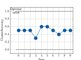 >>> # Example plotting multiple values >>> import torch >>> from torchmetrics.clustering import ClusterAccuracy >>> metric = ClusterAccuracy(num_classes=4) >>> values = [ ] >>> for _ in range(10): ... values.append(metric(torch.randint(0, 4, (10,)), torch.randint(0, 4, (10,)))) >>> fig_, ax_ = metric.plot(values)
