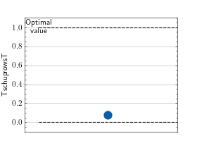 where \(n_{ij}\) denotes the number of times the values \((A_i, B_j)\) are observed with \(A_i, B_j\) represent frequencies of values in preds and target, respectively. Tschuprow’s T is a symmetric coefficient, i.e. \(T(preds, target) = T(target, preds)\), so order of input arguments does not matter. The output values lies in [0, 1] with 1 meaning the perfect association.